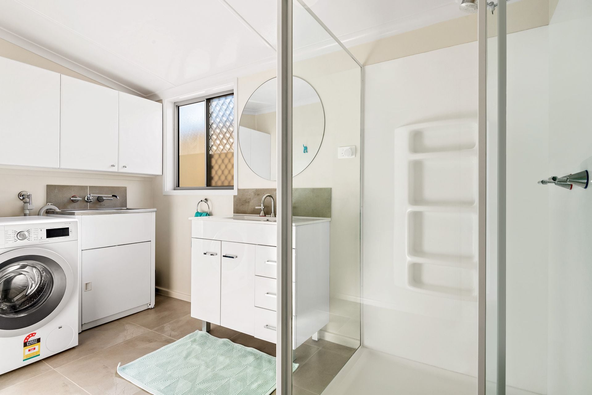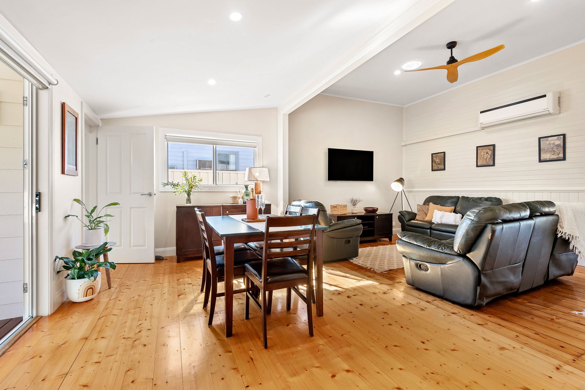 - Bright and open living/dining with s/s air con, ceiling fan, timber flooring and Dado boards