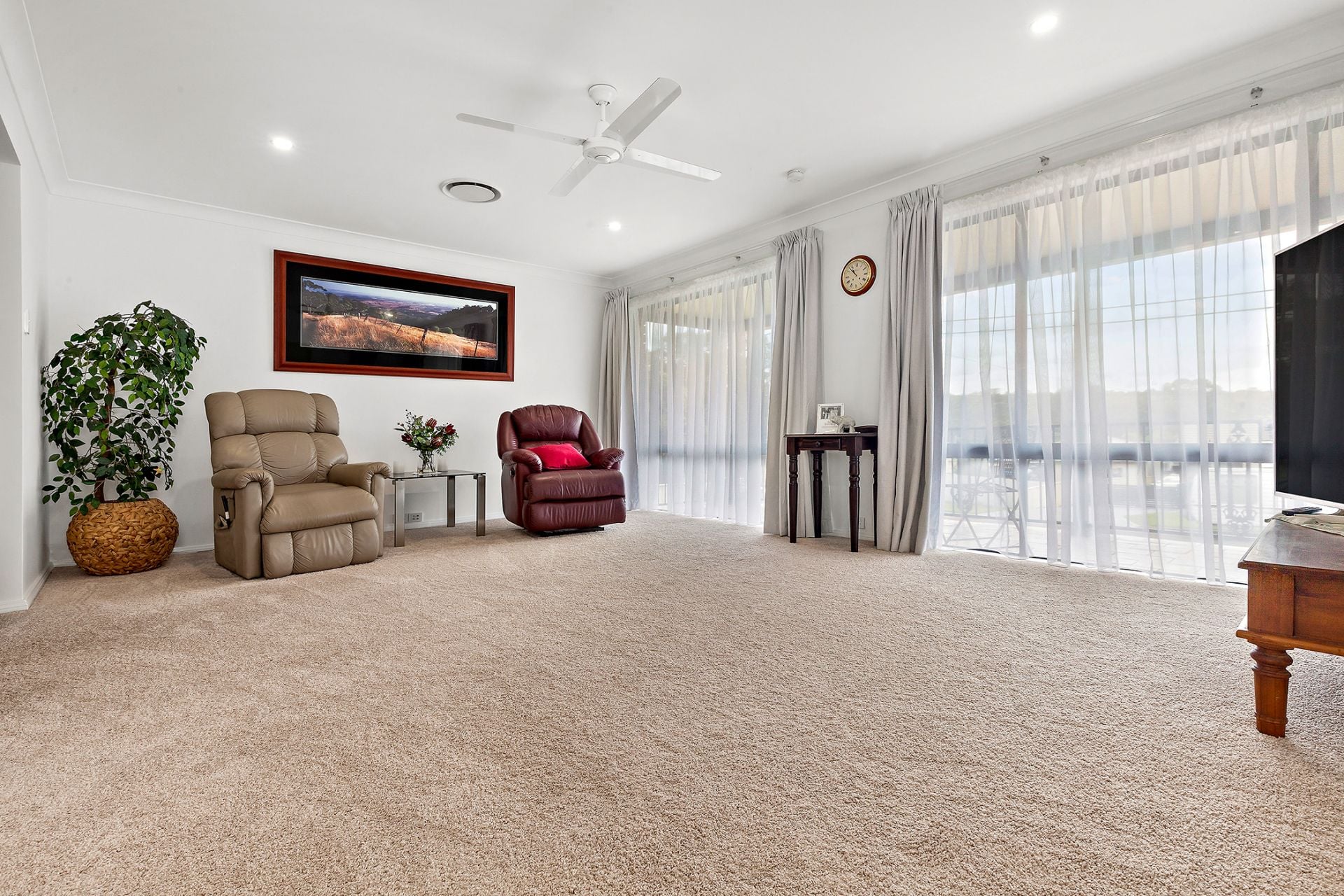 - 4 zoned-ducted A/C and ceiling fans throughout, 12 solar panels, 2 separate living areas plus casual dining