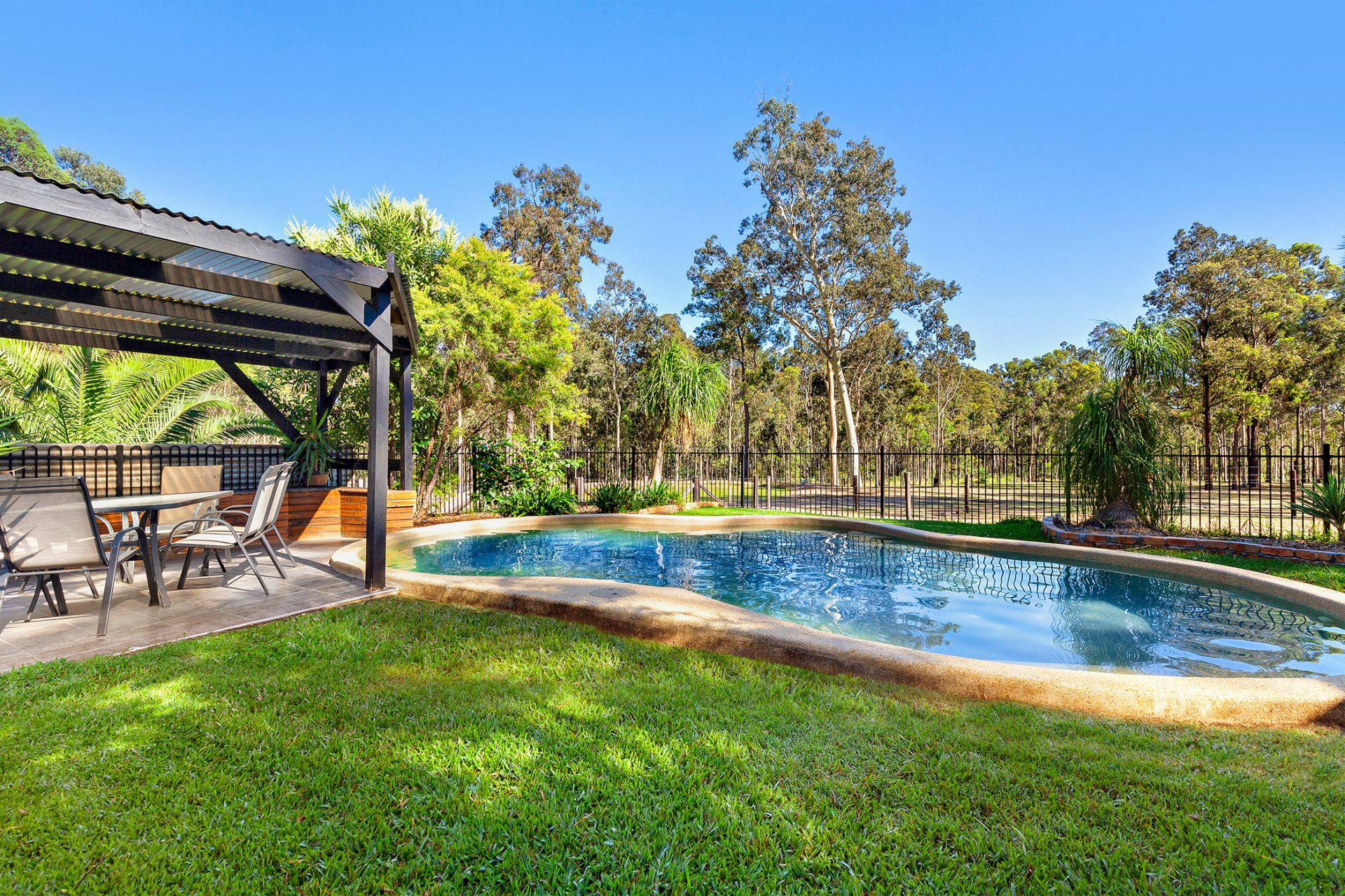 - Huge covered entertaining area, in-ground salt-water pool