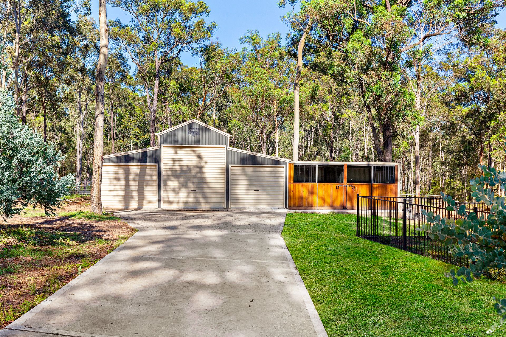 - 3 bay shed (12.9x9.4m) with high roller doors, two 3.5x5.8m stables, 3 dams and 3 paddocks