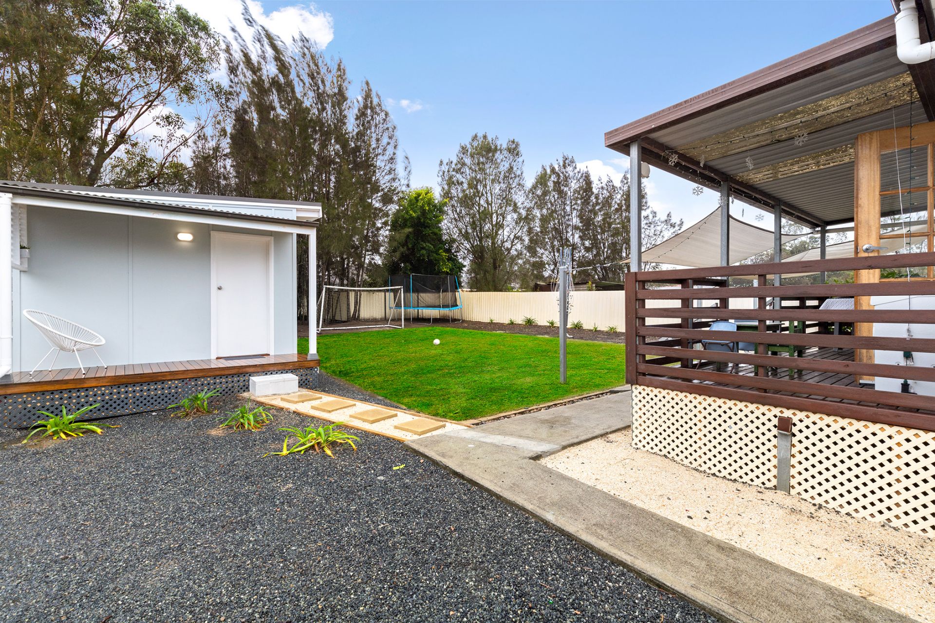 - Garden shed, front deck, BASIX water tank and private courtyard