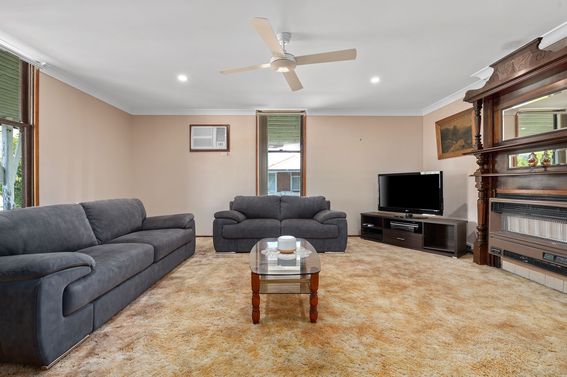 - Living room hosts original fireplace with mantle, ceiling fan and reverse cycle air conditioning
