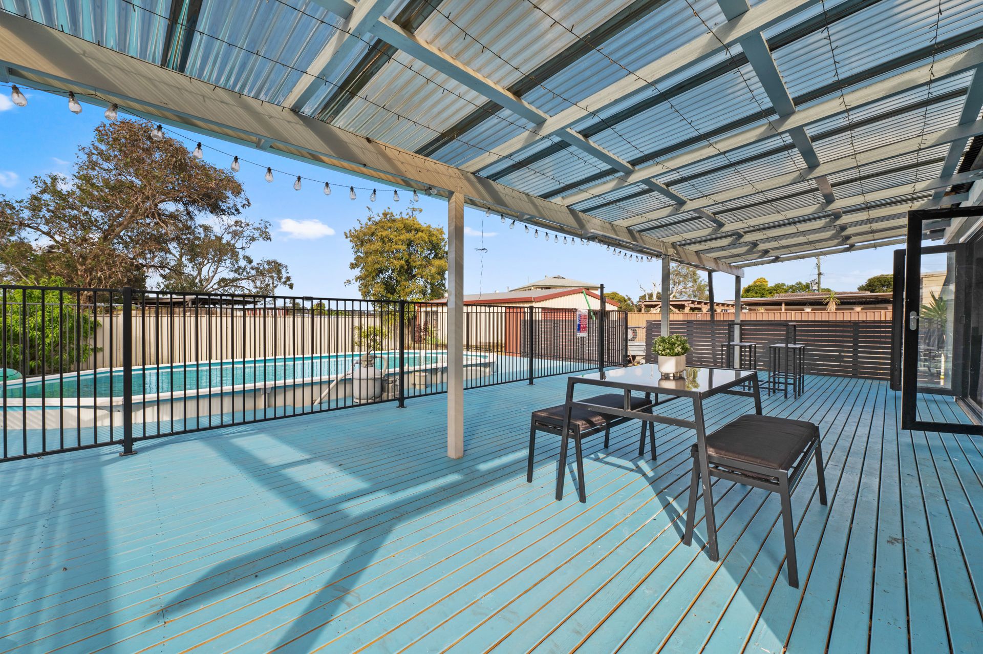 - Large outdoor entertaining area with luminous family style pool
