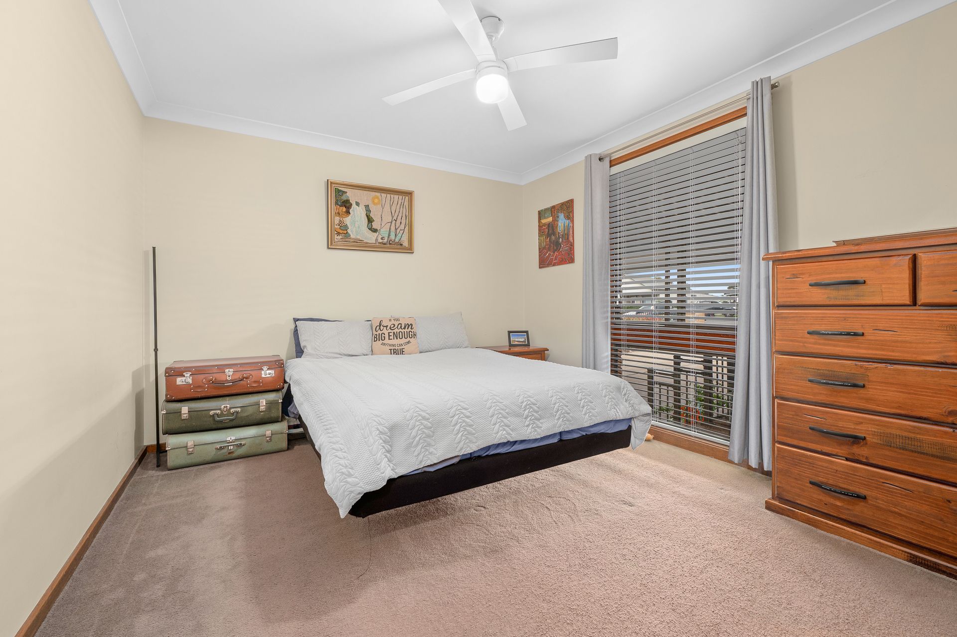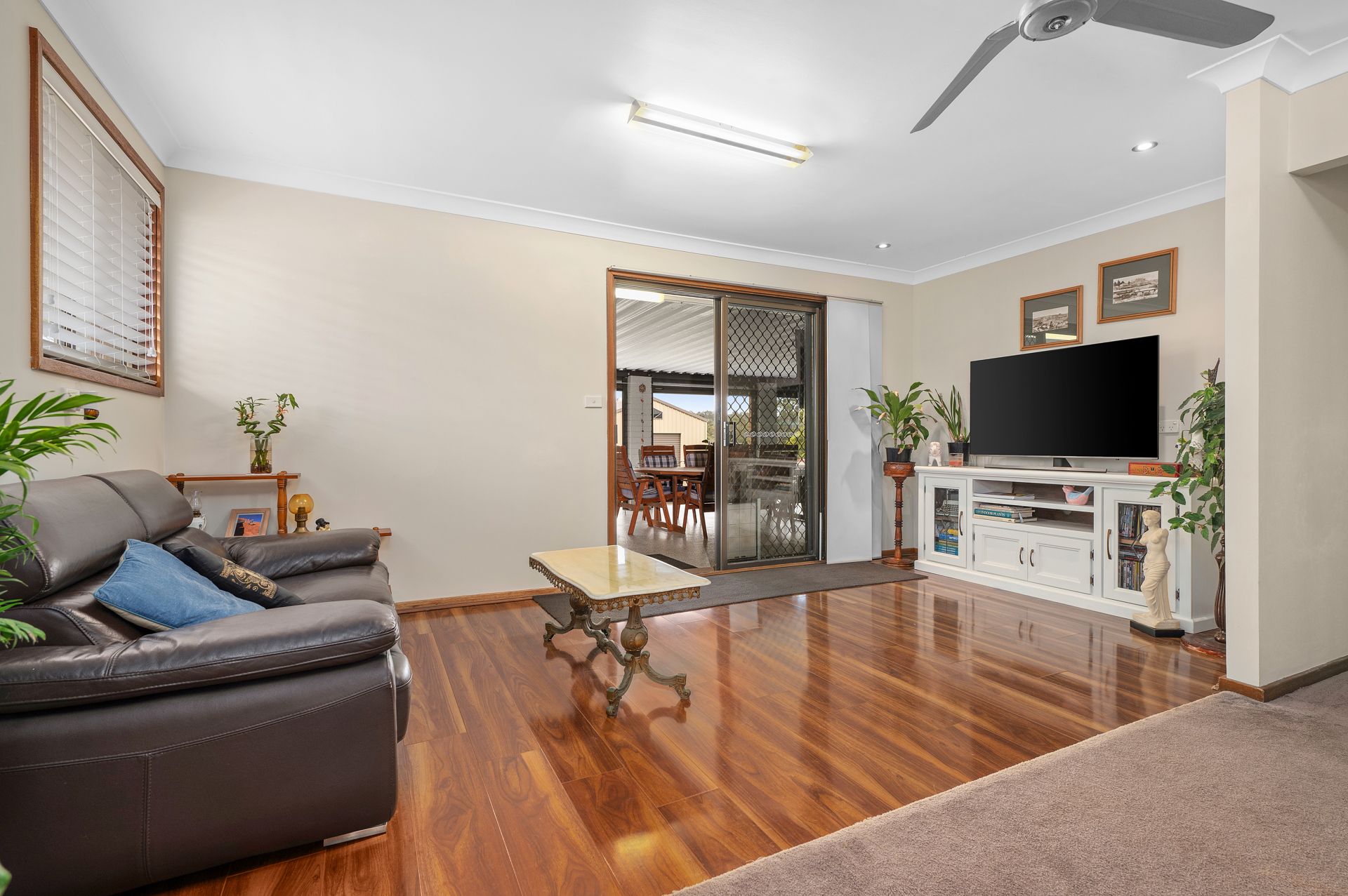 Bedrooms feature ceiling fans and built-in wardrobes, with the spacious fourth bedroom alternatively serving as a quiet home office. The kitchen, dining, and living areas flow together, with the kitchen serving easily and appreciating plenty of cabinetry. From front to back, this home is designed not just to be lived in, but to be loved.