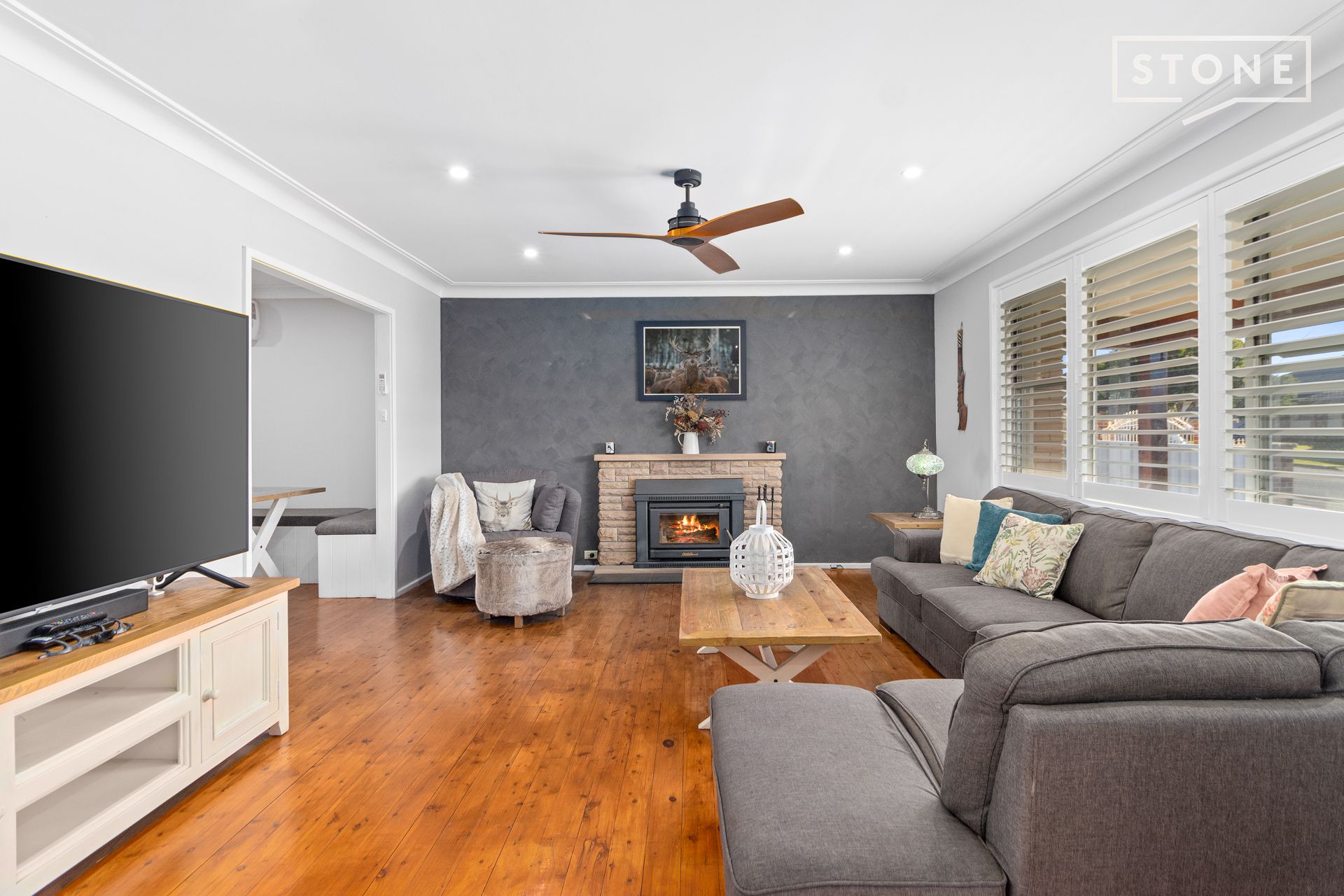 Settled comfortably into a quiet, premium street, this fully renovated three-bedroom home is a true delight. Upon entry, warm timber flooring combines with natural light filtering through plantation shutters and cosy slow combustion fireplace to create an atmosphere that is both inviting and relaxing. The bedrooms are comfortable, with the primary room enjoying enough space for a king bed and bedside tables, a ceiling fan, wall-spanning wardrobes and its very own modern ensuite.