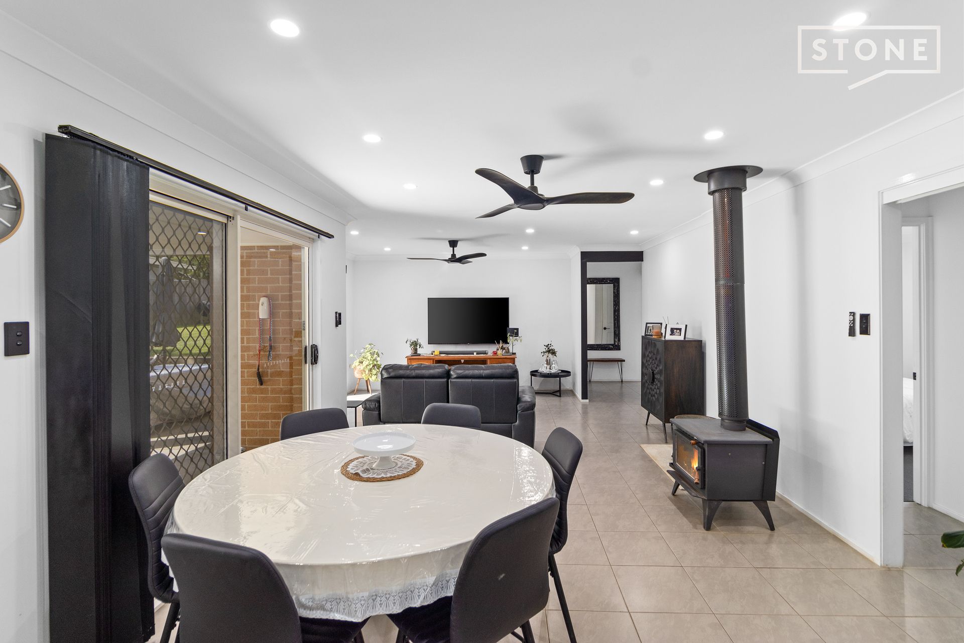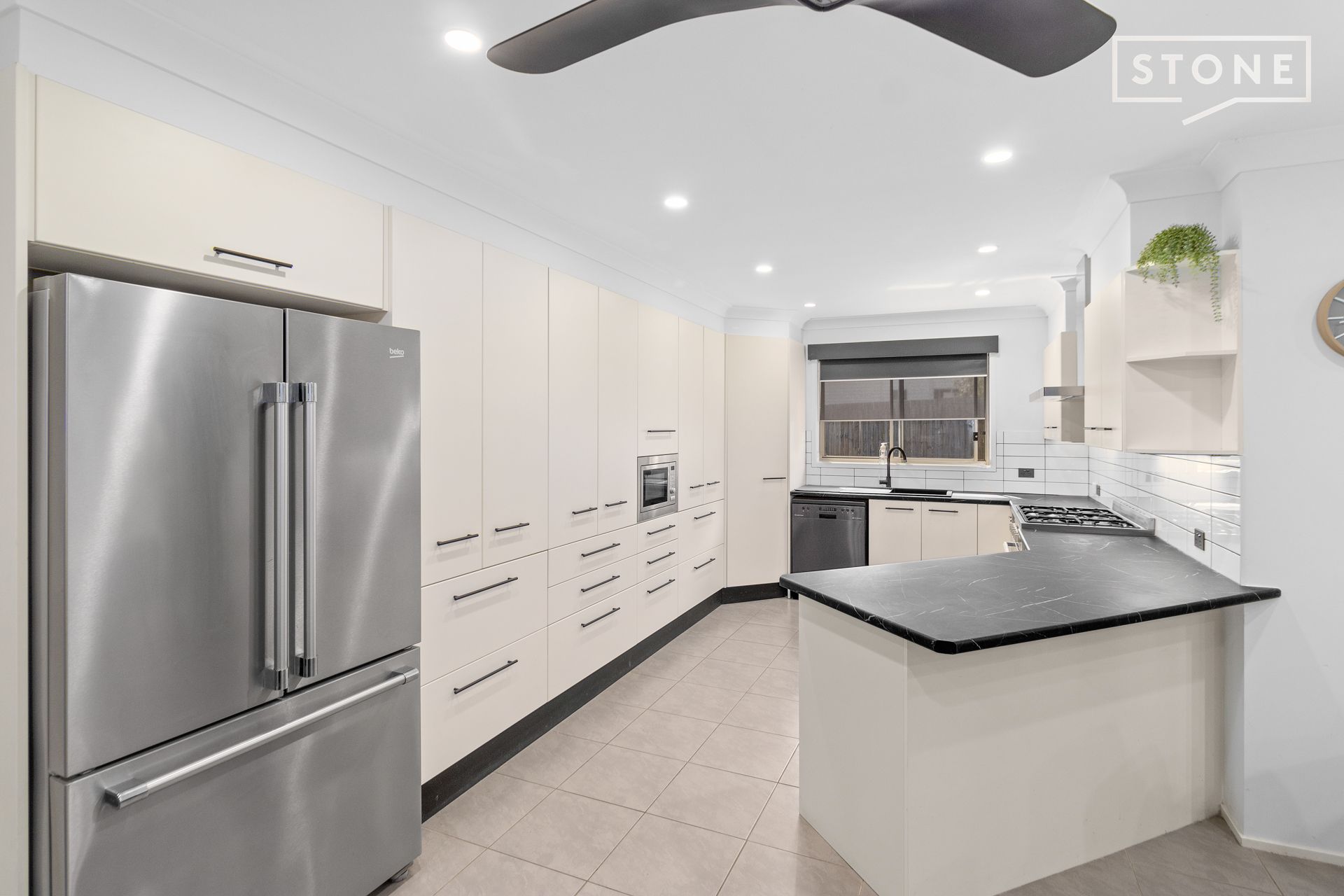 Bathed in natural light, and sporting sleek ceiling fans and a central fireplace, the property ensures a consistently pleasant atmosphere with both living areas being generously sized. The open plan kitchen, dining and family spaces are central to the home and encourage frequent family interaction. The kitchen is well appointed with an abundance of cabinetry, gas cooking, and direct service to the dining space.