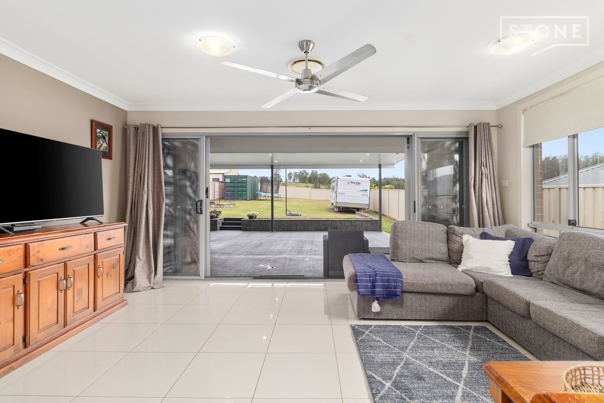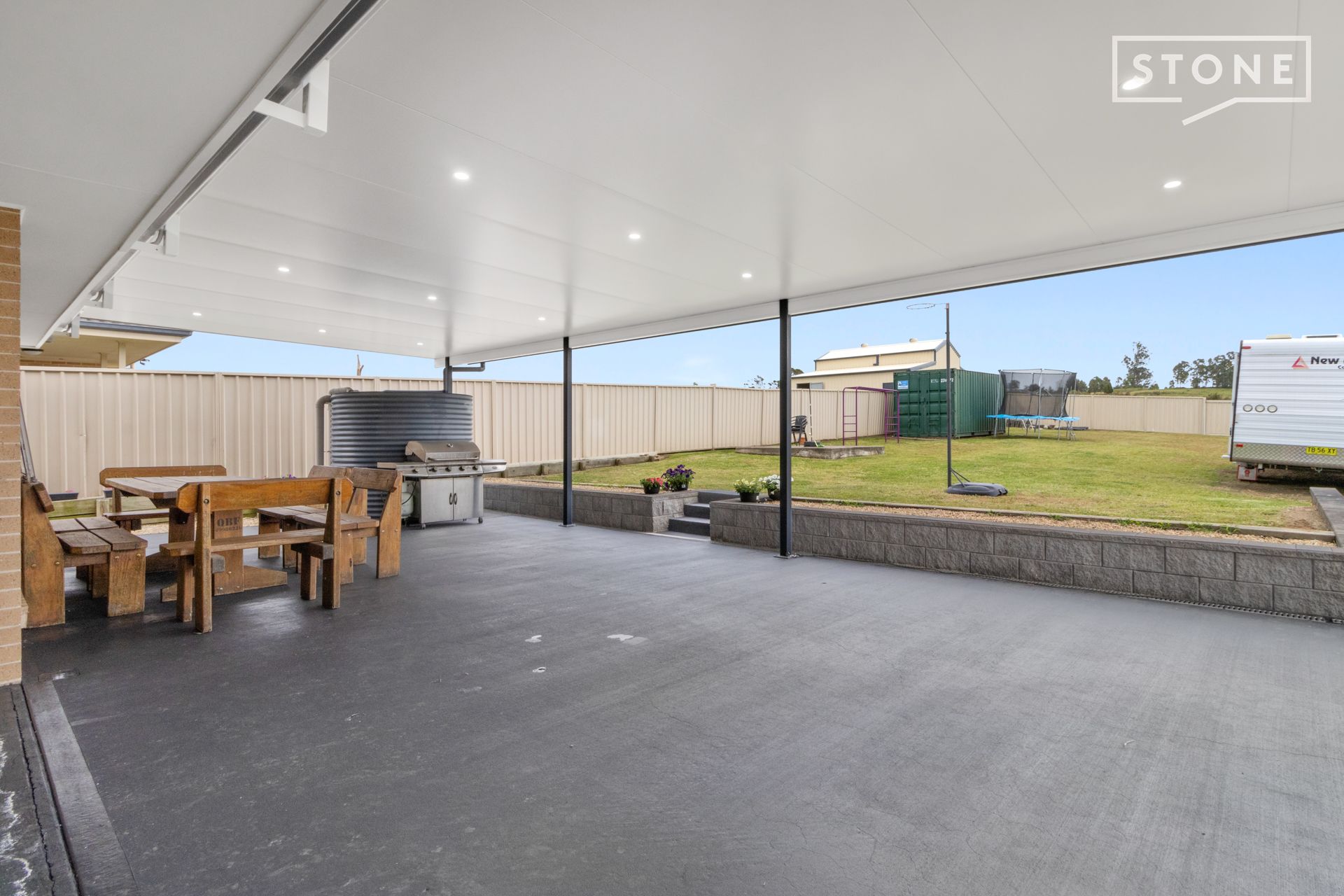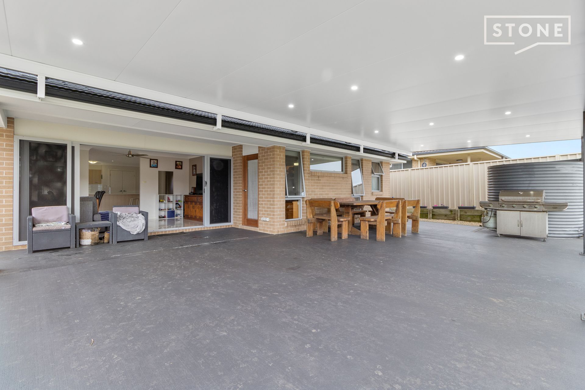 - Designated living zone connected to nearly 85sqm covered entertaining patio