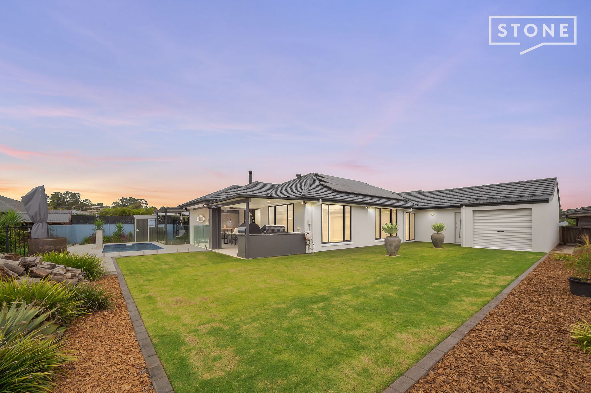 Presiding in the sought-after Heritage Parc Estate, surrounded by a network of parks, playgrounds, ponds and just 1km from Rutherford's vibrant centre, 9 Grand Parade makes a statement for those seeking space and quality at every turn! Built by Metricon homes, this wonderful ex-display residence is set on a huge 839sqm parcel of landscaped grounds with a new swimming pool and boasts a high level of inclusions plus a new 11kw solar system. Upon entry you are immediately greeted by perfectly landscaped gardens and an impressive triple garage which provides rare drive-through access to the rear yard for additional storage needs. Enter the home to find a modern four-bedroom layout with master bedroom hosting its own stylish, designer ensuite, two built-in robes and direct access to the in-ground pool. The kids' bedrooms all feature built-in robes and are centred around the third living room and main bathroom with shower, luxe bath, and separate powder room.