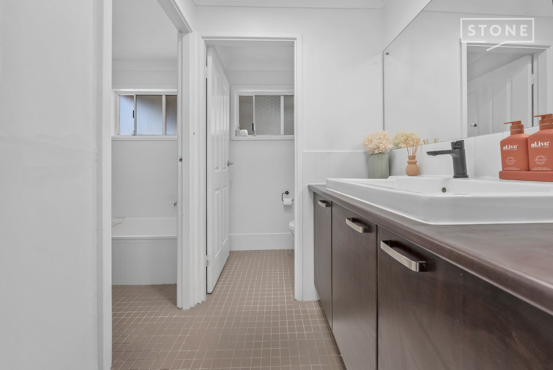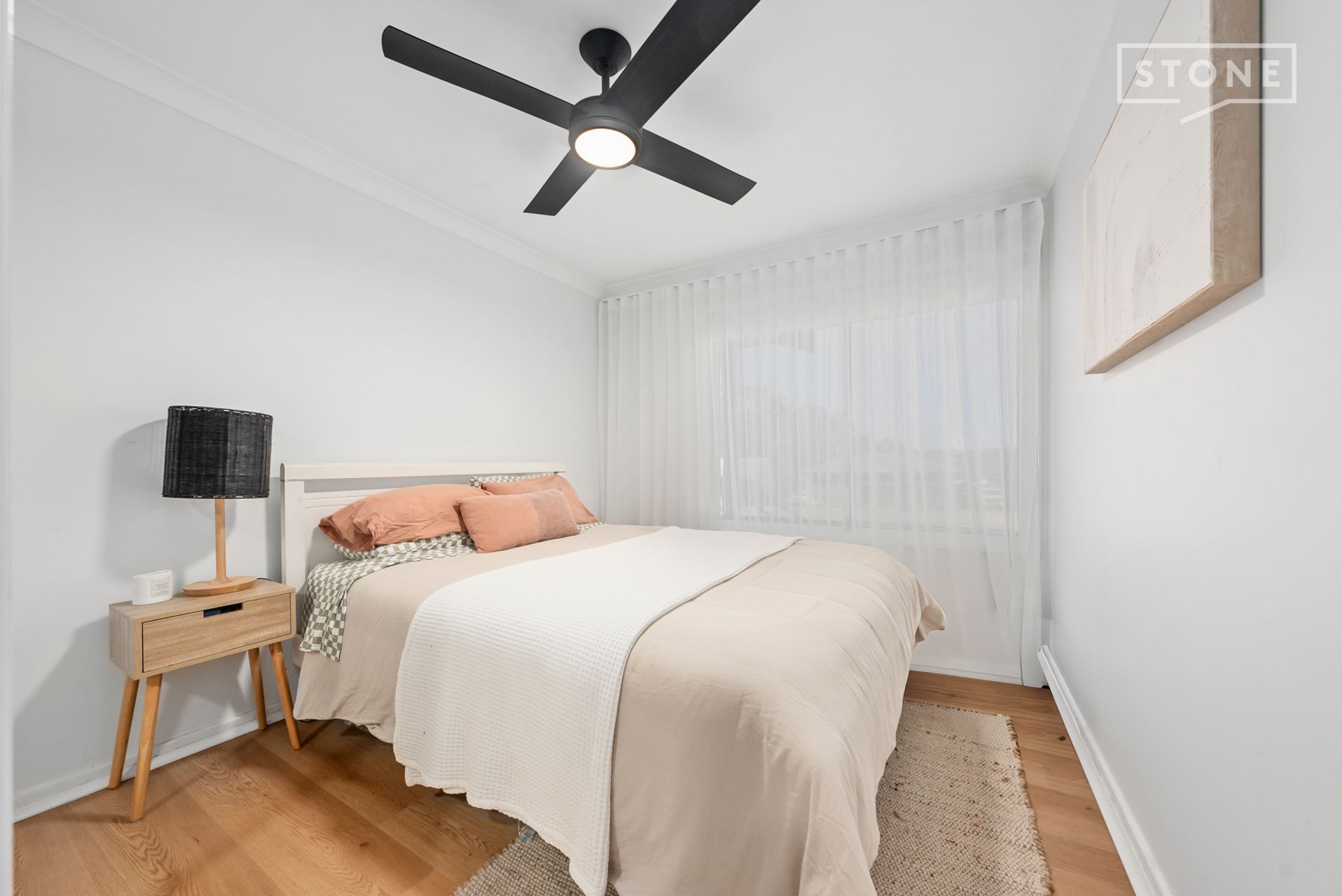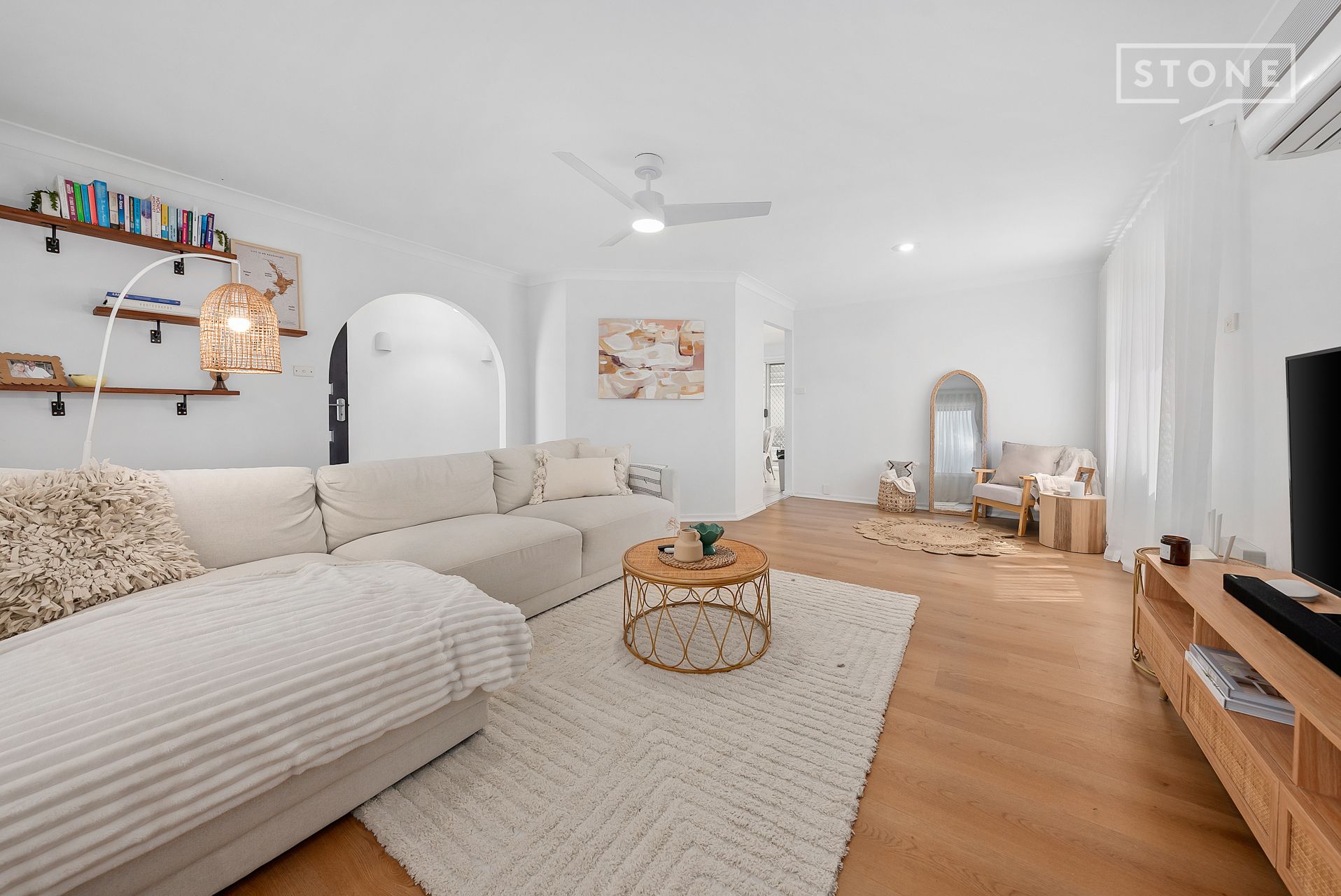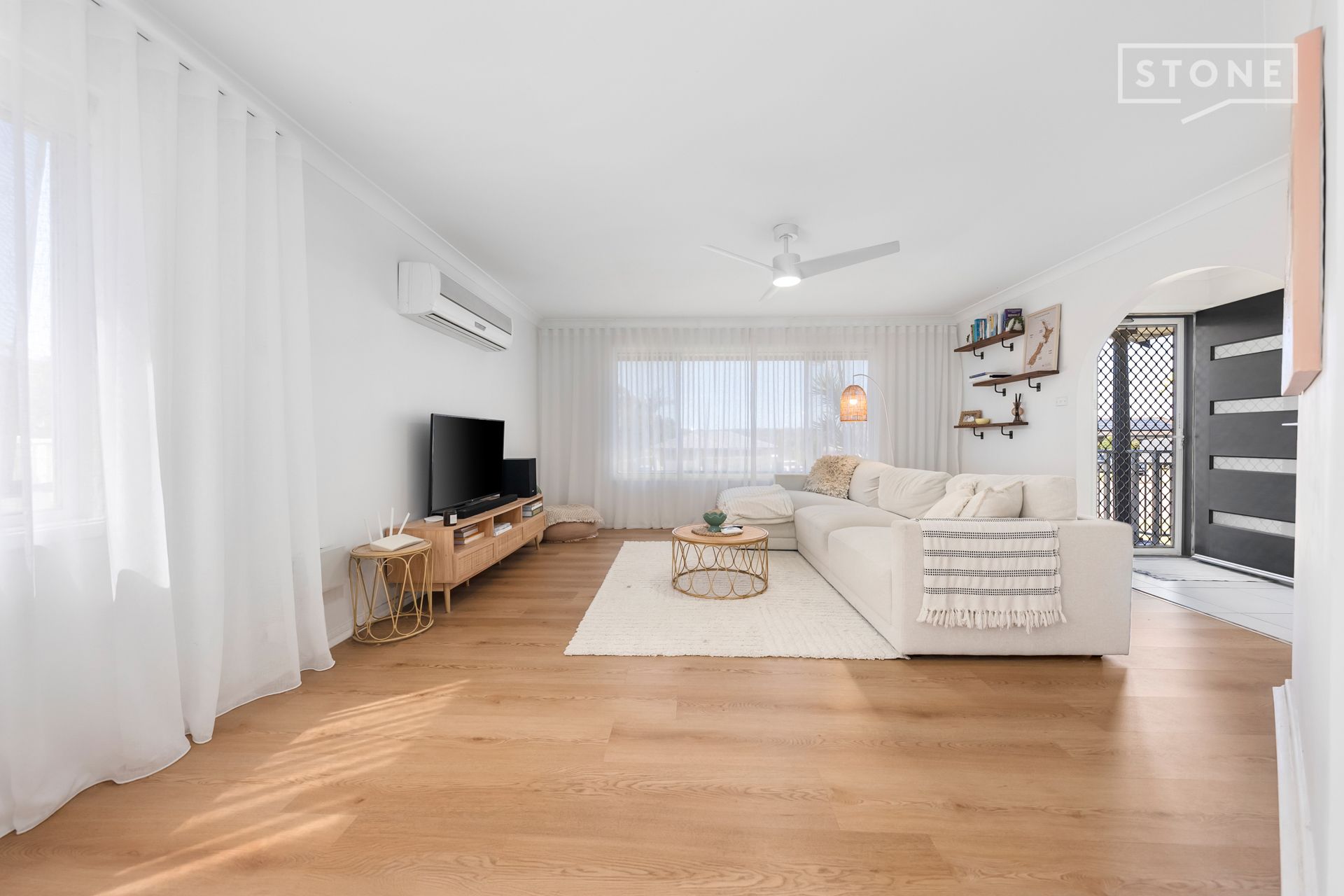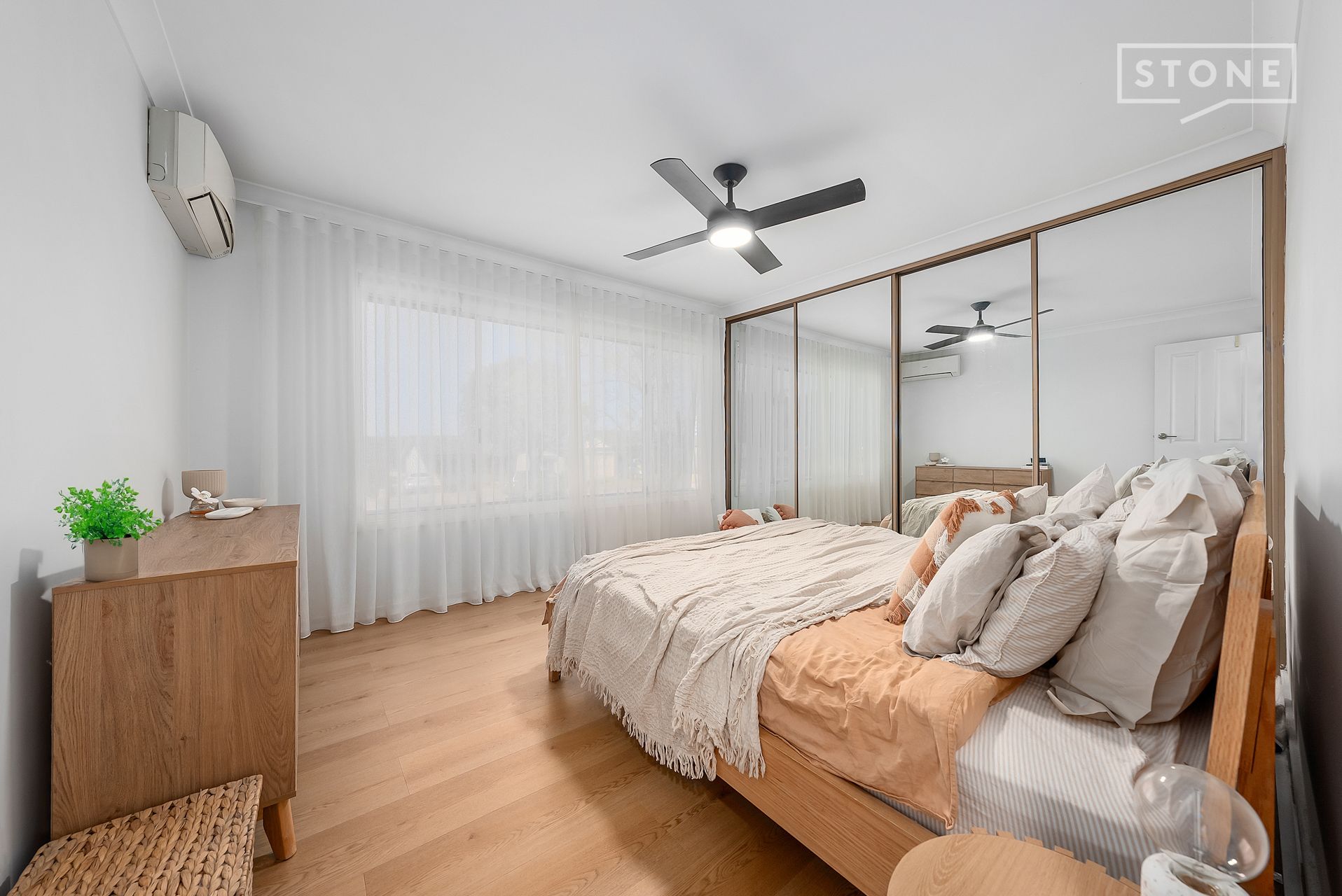 - Hybrid flooring, ceiling fans and split-system A/C