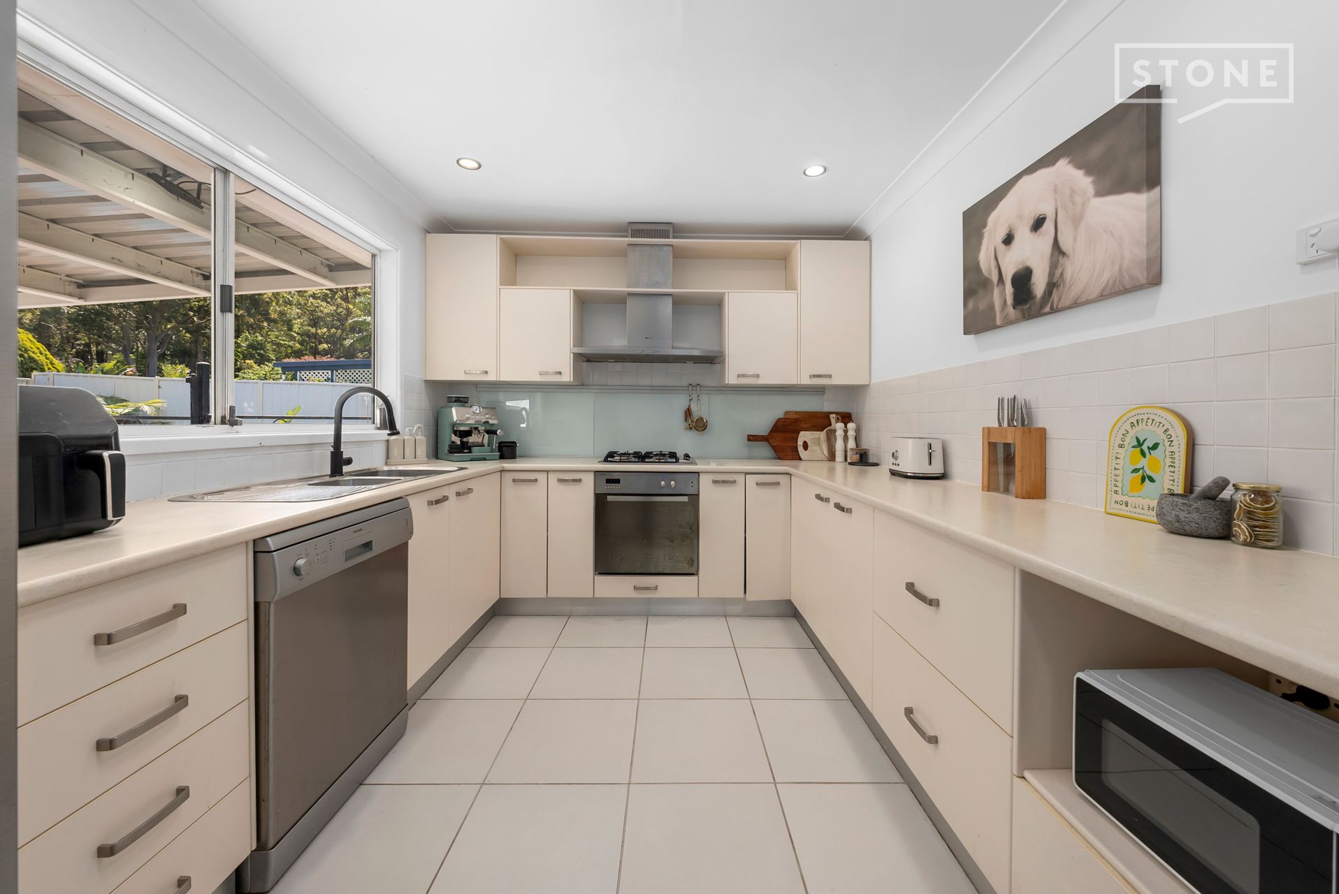 Inside, three robed bedrooms and a modern three-way bathroom ensure everyday practicality for the family. The sun-filled lounge with custom sheer curtains and split system a/c offers space to relax, while the kitchen and dining connect seamlessly to the undercover entertaining area. Outside, kids and pets can enjoy the grassed yard, and shopping days are made easier with the powered garage roller door and covered alfresco for easy entry into the home.