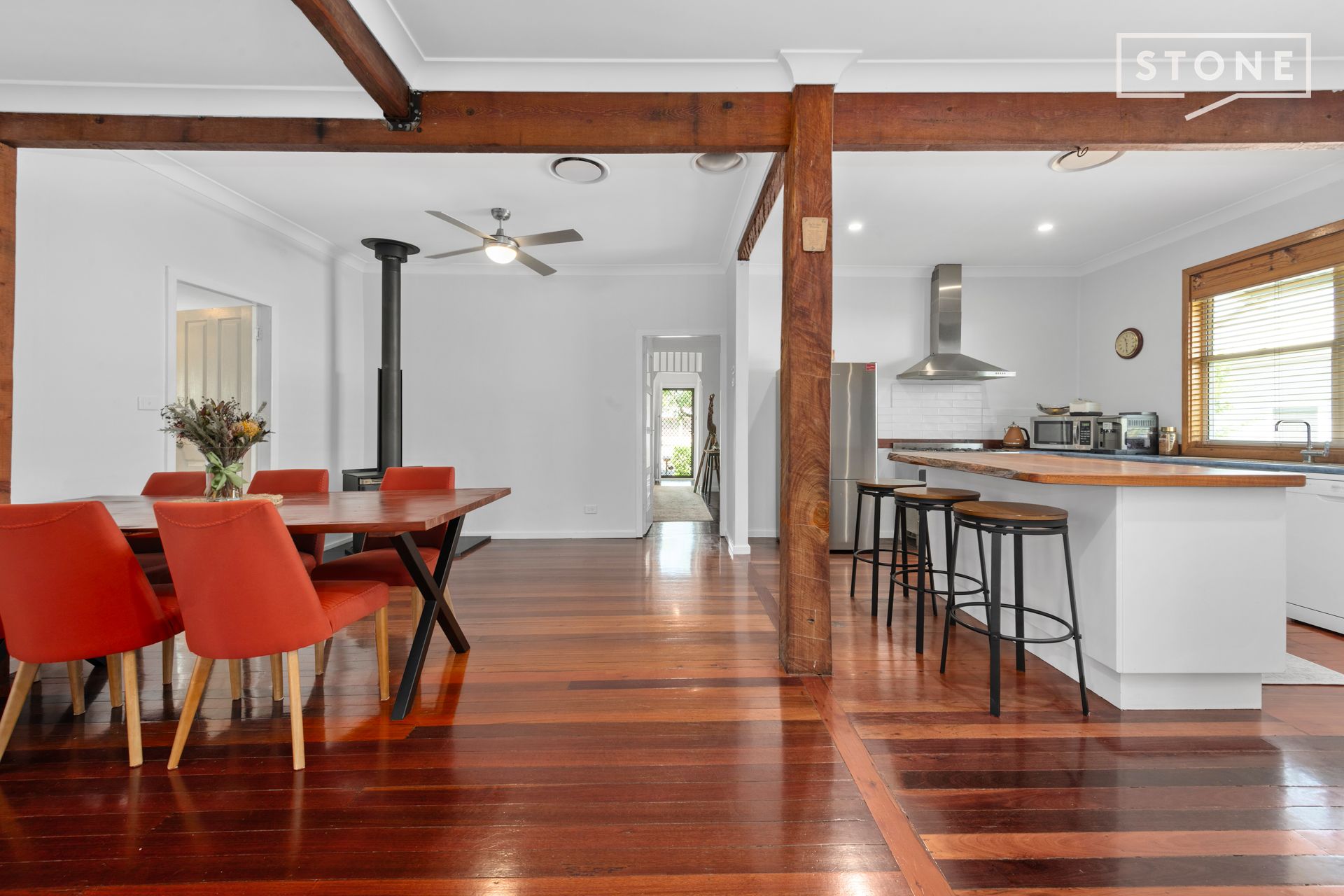 - Inviting open-plan living with wood-burning fireplace and brand-new ducted air conditioning