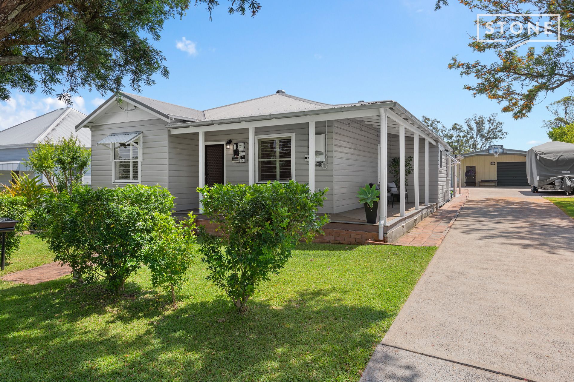 Brimming with charm and character, this delightful home with a return verandah sits proudly in one of Branxton's most sought-after streets. Enjoy the best of both worlds - a relaxed village atmosphere with the convenience of being just moments from schools, shops, the local golf club and the Hunter Expressway. Perfectly positioned in the heart of the Hunter Valley wine region, it offers easy access to Cessnock, Singleton and Maitland. Stepping inside, a long, welcoming hallway with polished timber floors sets the tone for the home's warmth and character. Four generous bedrooms are positioned either side of the hall, leading through to a spacious open-plan living area at the rear. The modern kitchen features a large timber island bench, 900mm oven with six-burner gas cooktop, and an abundance of pantry storage - ideal for families or entertainers. The wood fire creates a warm and inviting ambience across the kitchen, dining and lounge areas, while brand-new ducted air conditioning ensures year-round comfort. The newly renovated main bathroom has been thoughtfully designed with an oversized shower, and there's also an original claw-foot bath, shower, toilet and combined laundry-providing practicality and space for the whole family. The level quarter-acre block is the perfect family haven, complete with lush lawns, an inviting swimming pool for summer, and plenty of space for pets and kids to play. Tradies or hobbyists will love the double garage and large workshop space, plus there's a triple carport offering extra undercover parking or a great play area out of the weather. Energy efficiency is also covered with 20 solar panels keeping running costs low. A wonderful all-round package for families or downsizers seeking character, comfort and convenience - this is one of Branxton's gems.