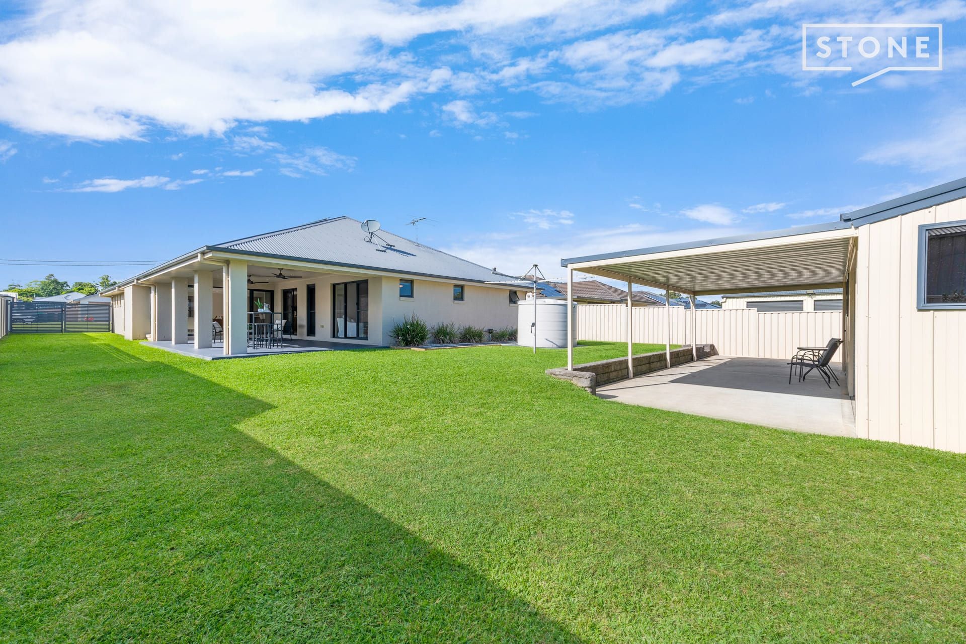 - Three-phase power connected, side access and family-friendly yard